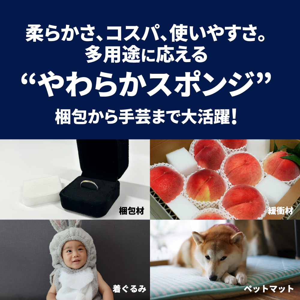 当店の中で一番硬いスポンジです。高密度な素材となっておりますため、梱包材や緩衝材としておすすめしております。 |
