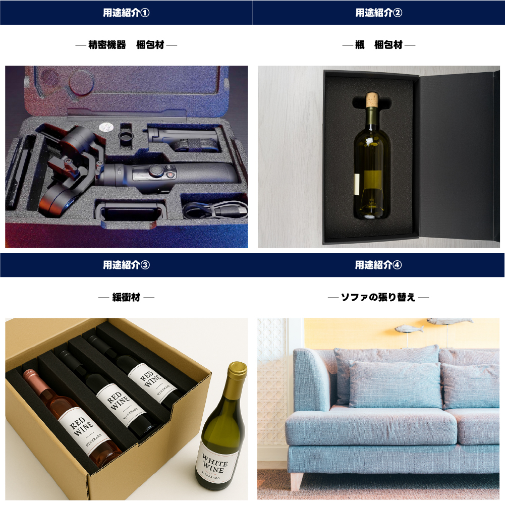 跳ね返す力の強いウレタンスポンジです。硬めで弾力性の強い感触がお好きな方におすすめです。 ソファー、マットレス、椅子の中身として使用されるウレタンスポンジです。 |